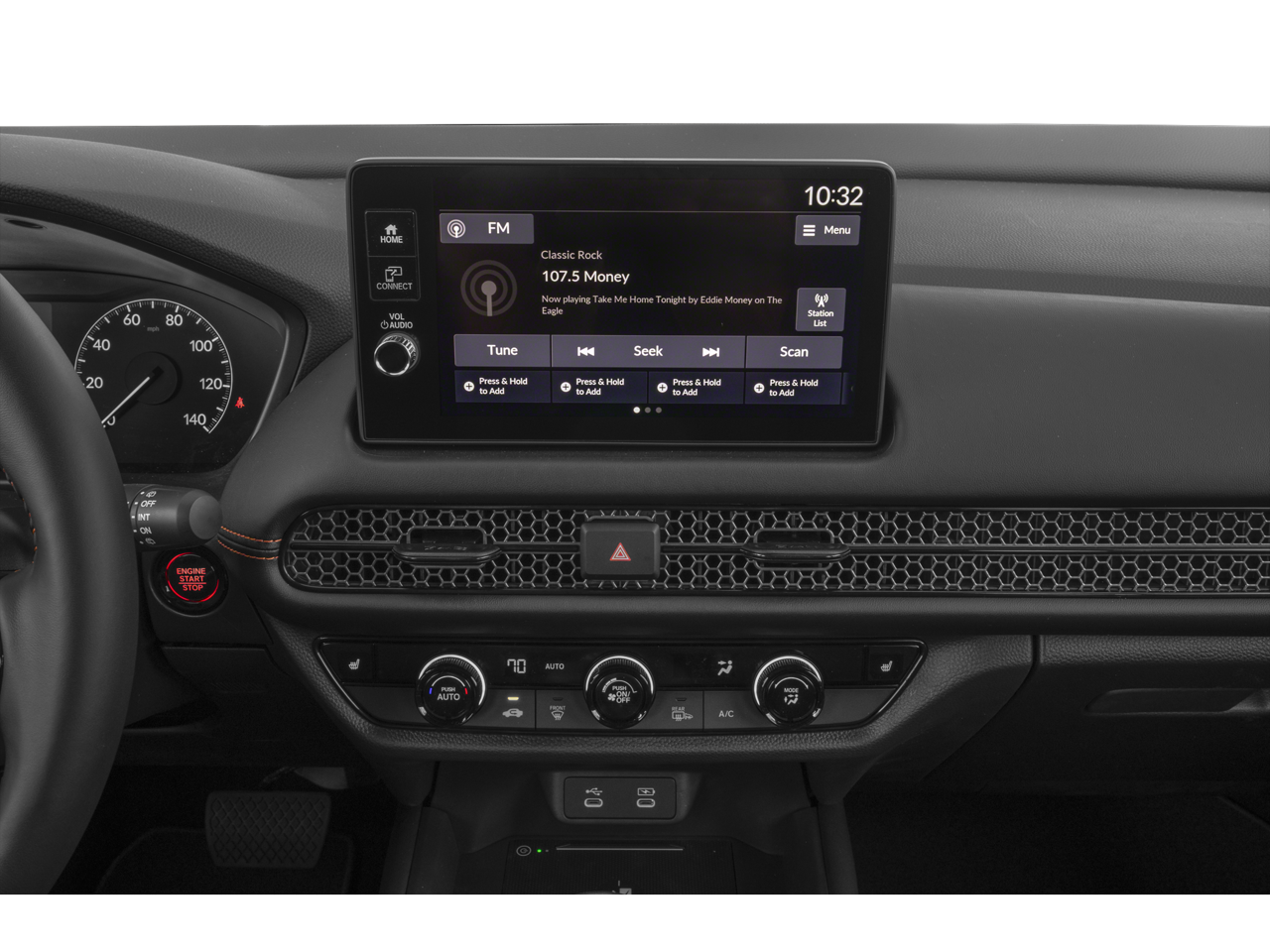 - Radio: 180-Watt Audio System w/6 Speakers -inc: 9-inch color touchscreen, wireless Apple CarPlay and Android Auto compatibility, Bluetooth® HandsFreeLink and streaming audio, 3.0A USB-C data/charging port in front console, Qi wireless phone charger, HondaLink and Speed-Sensitive Volume Compensation (SVC)
